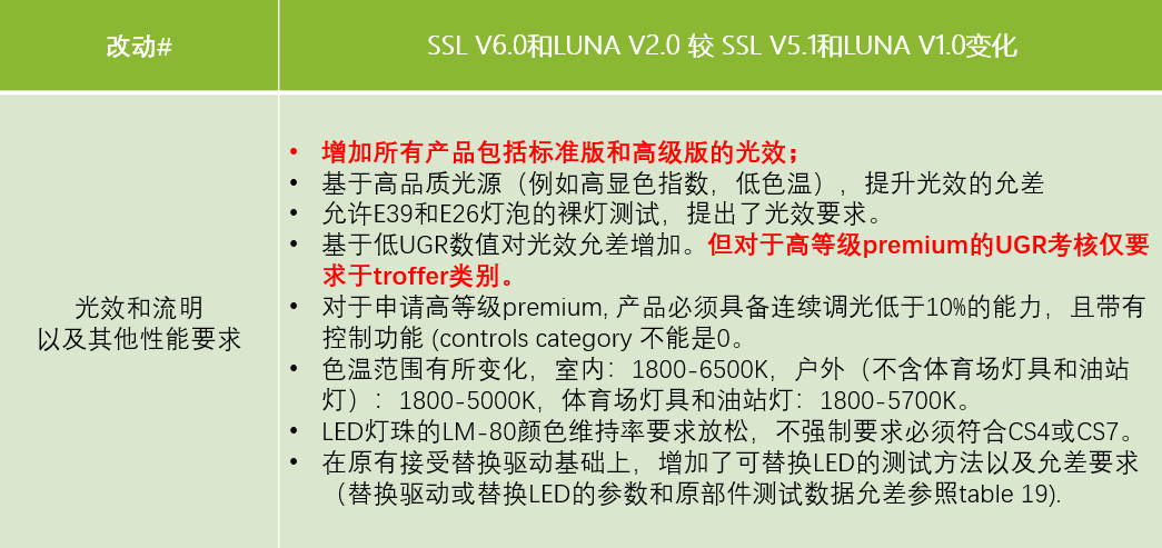 *V6.0如同目前V5.1高级要求,室内照明(除却high bay),对色温要求仍为4阶,high bay和户外产品要求7阶。