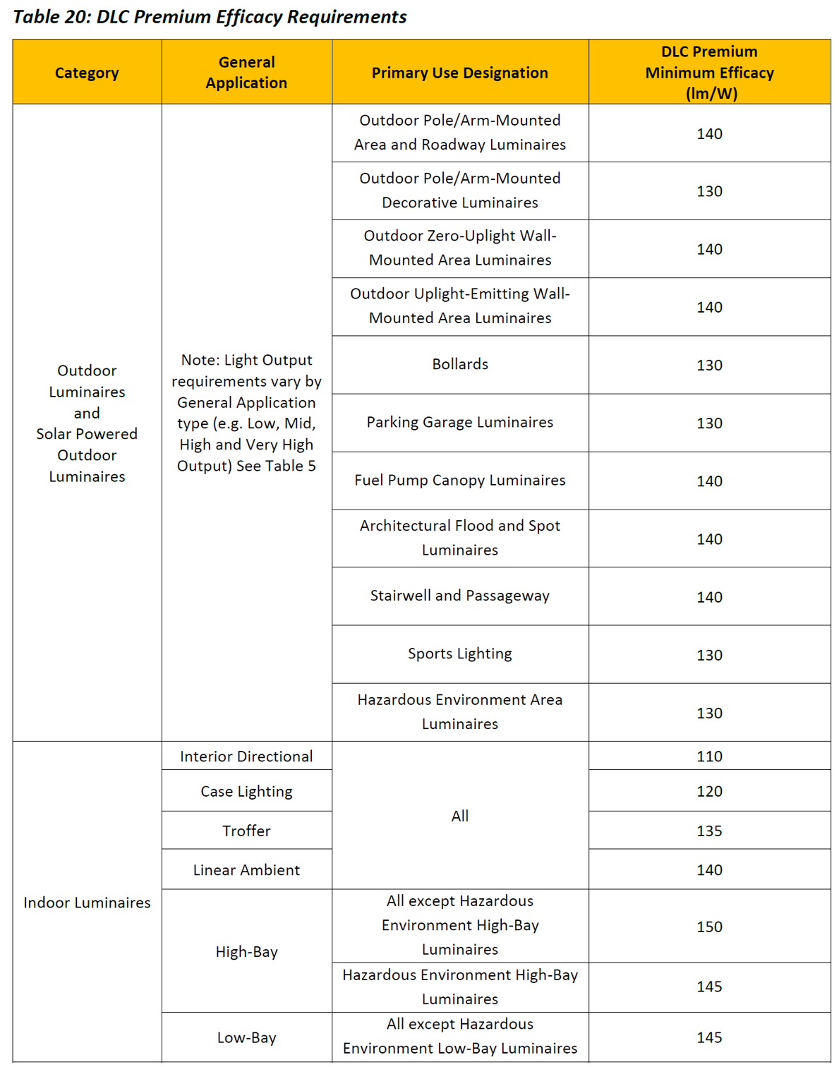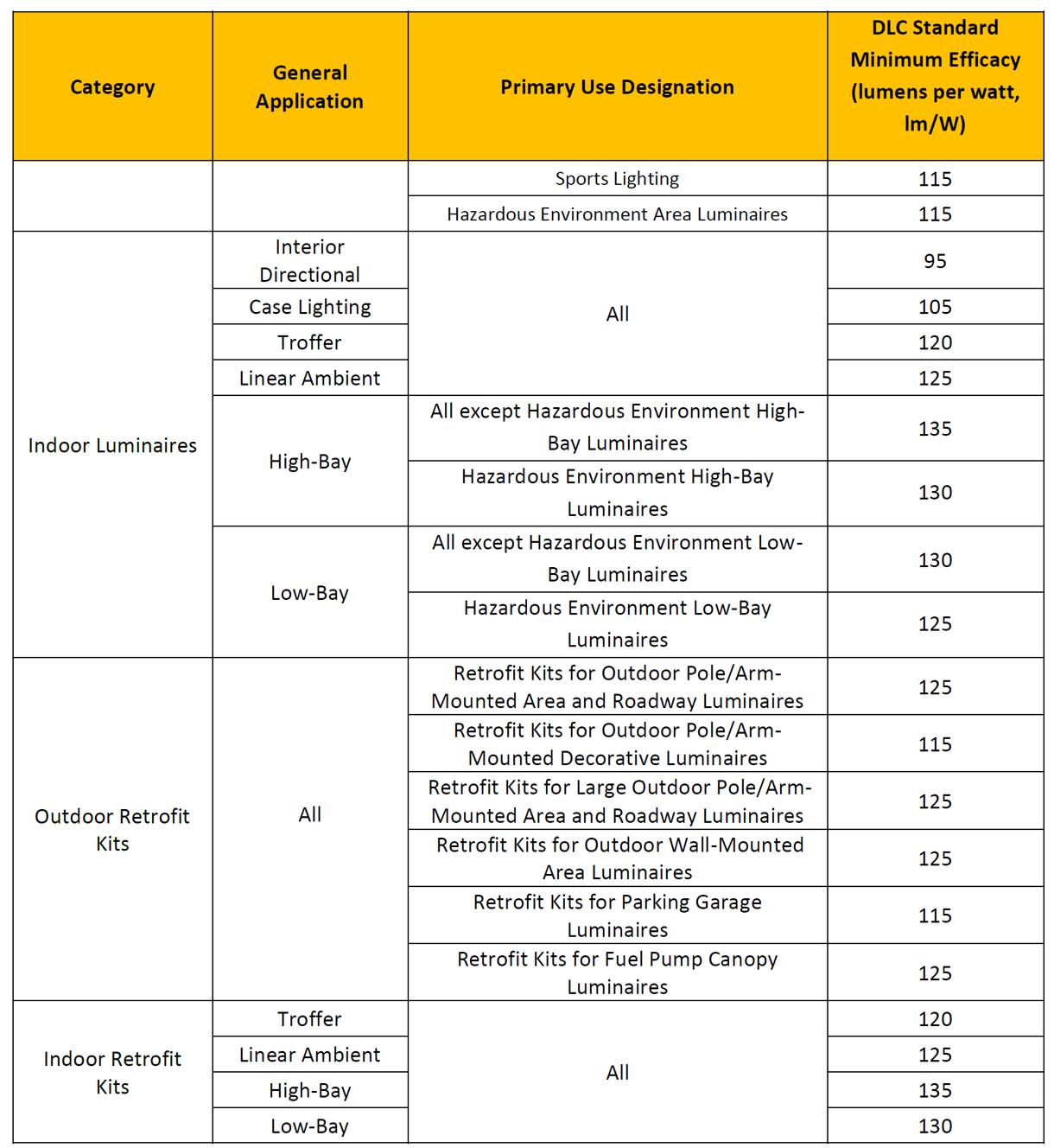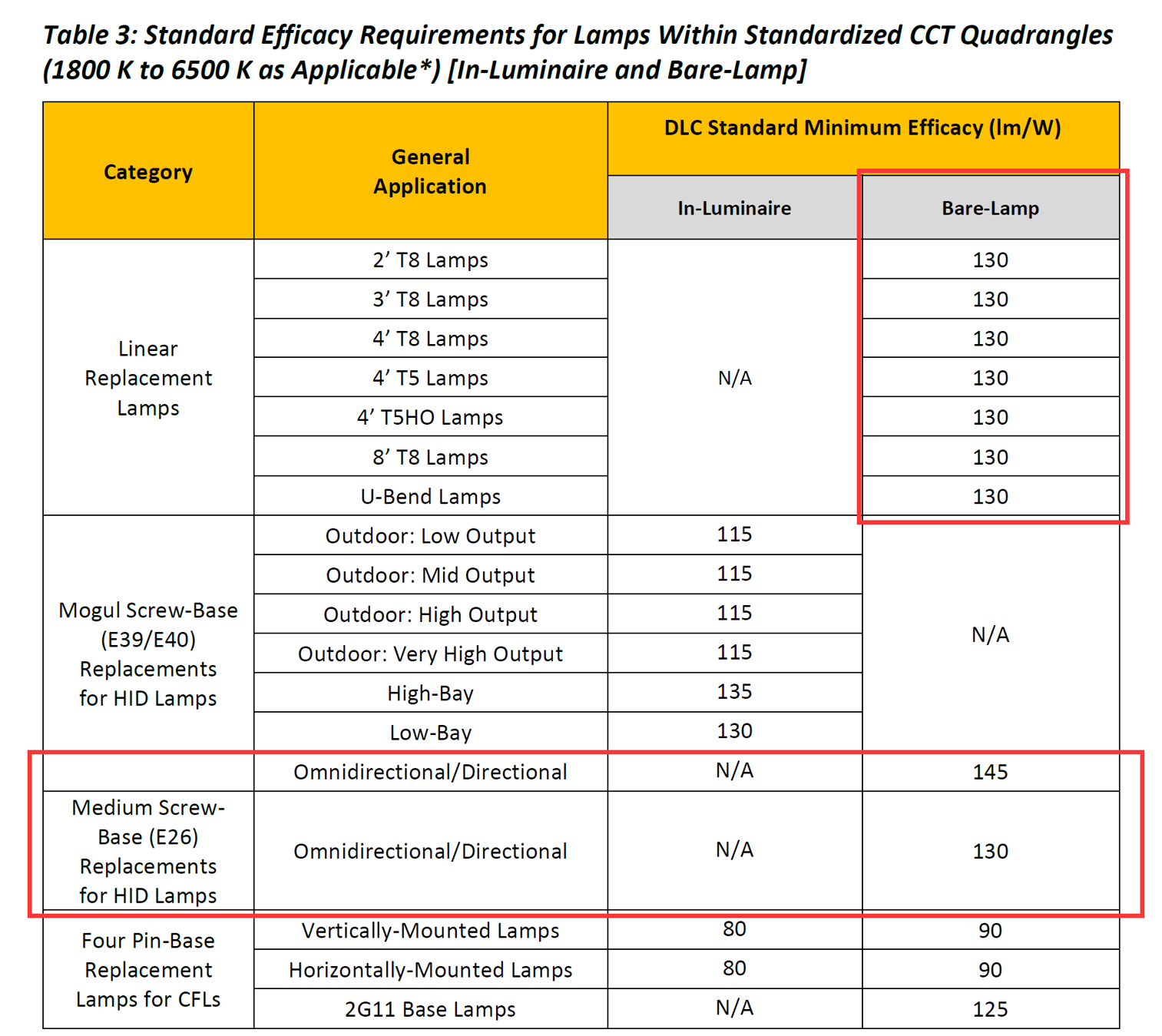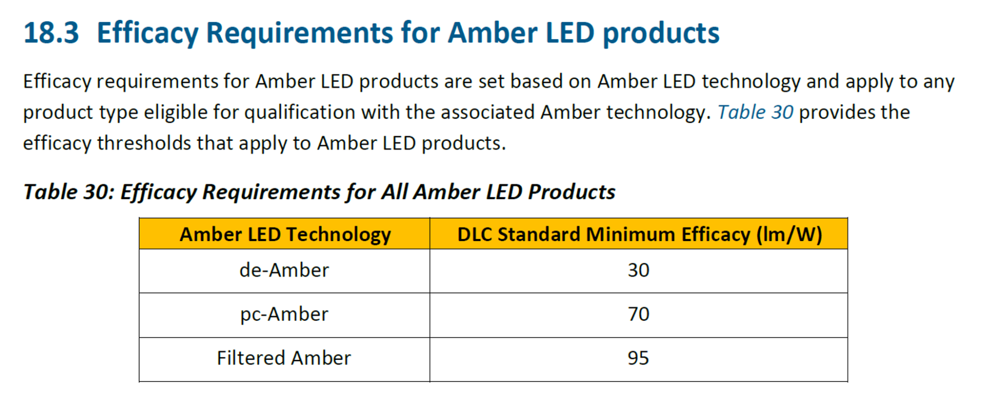 能效要求变更 (增加了琥珀色照明产品光效要求)